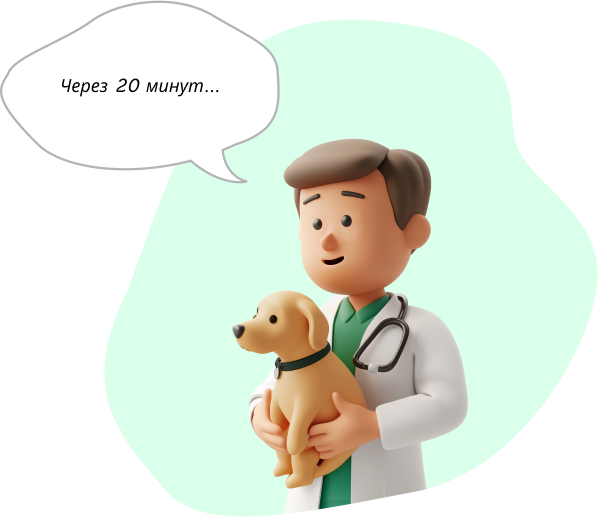 Ветеринар проведёт онлайн-консультацию или экстренно приедет на дом: обследует собаку, окажет помощь и назначит лечение. Это гораздо быстрее, чем везти питомца до ветеринарной клиники самостоятельно.